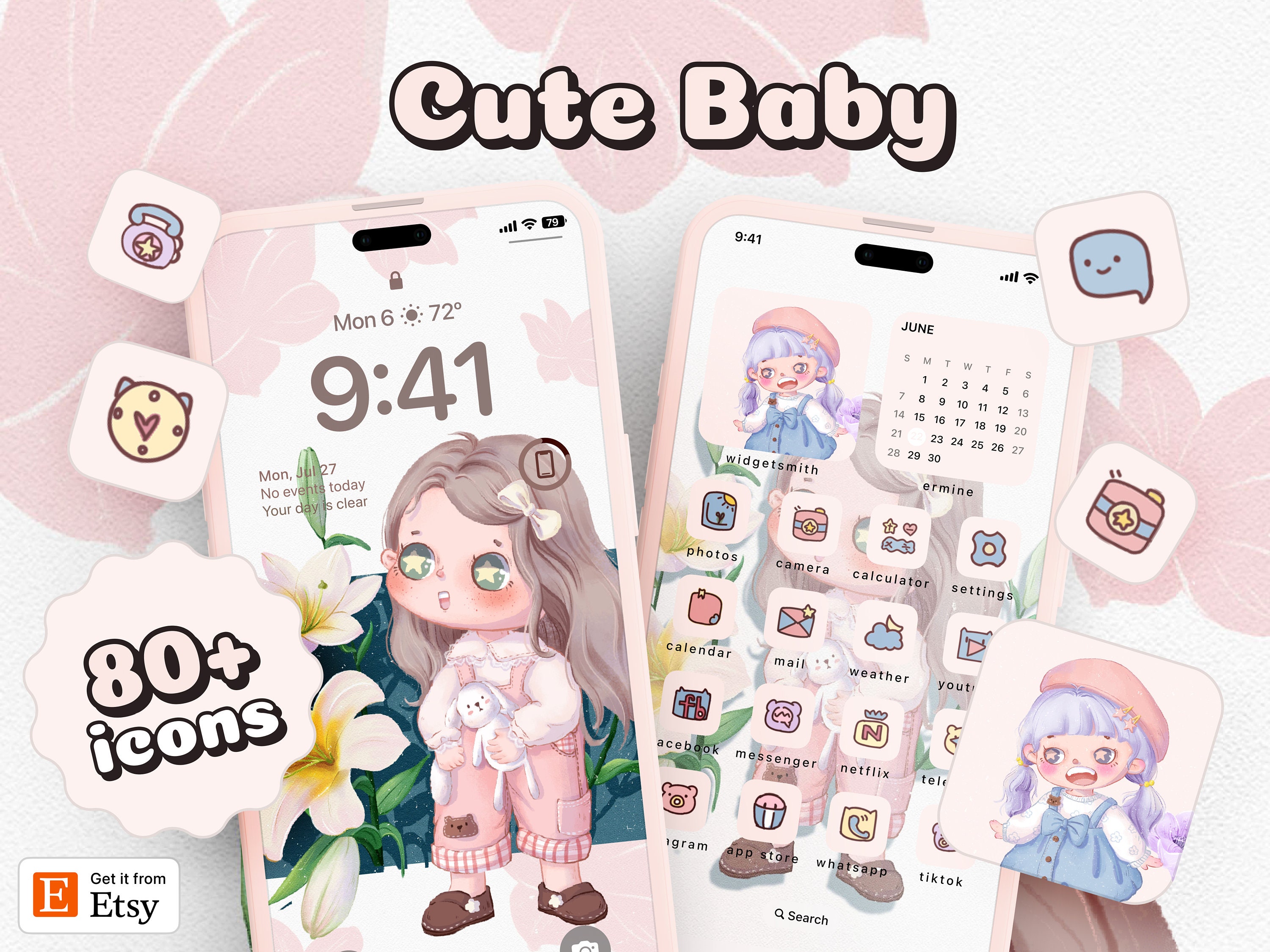 Buy 80 Pink Cute Young Girl App Icon Ios Iphone Ipad Android Online In India Etsy